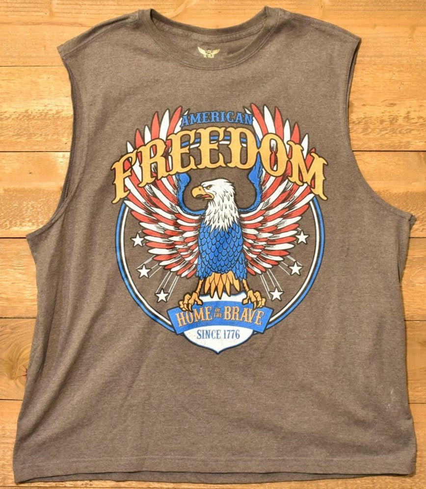 American Freedom Mens Cut off t shirt Home of the brave Grey American Eagle used