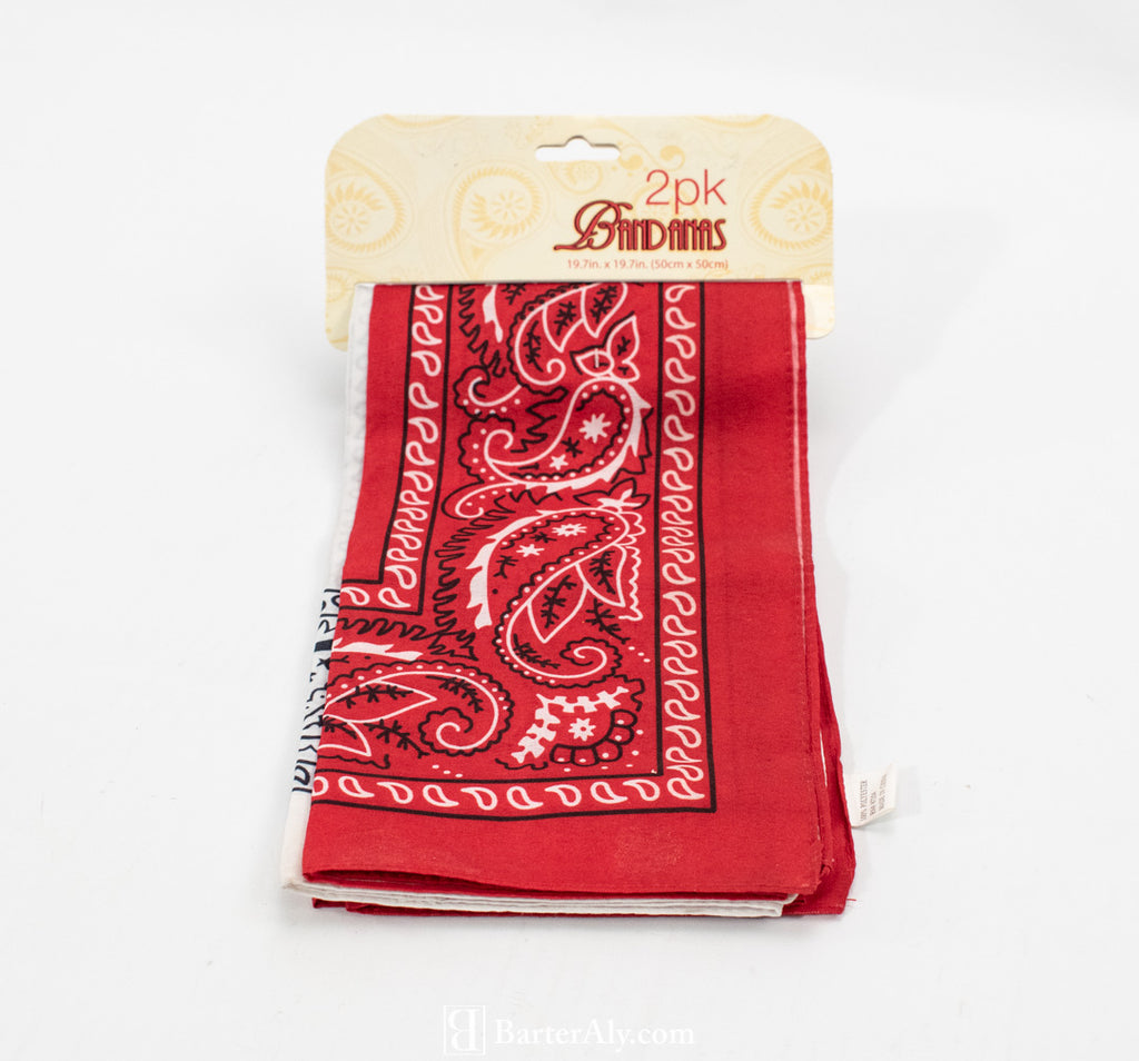 Bandana Vintage Red And White 2 Pack Headband Folding Pocket Cloth NEW