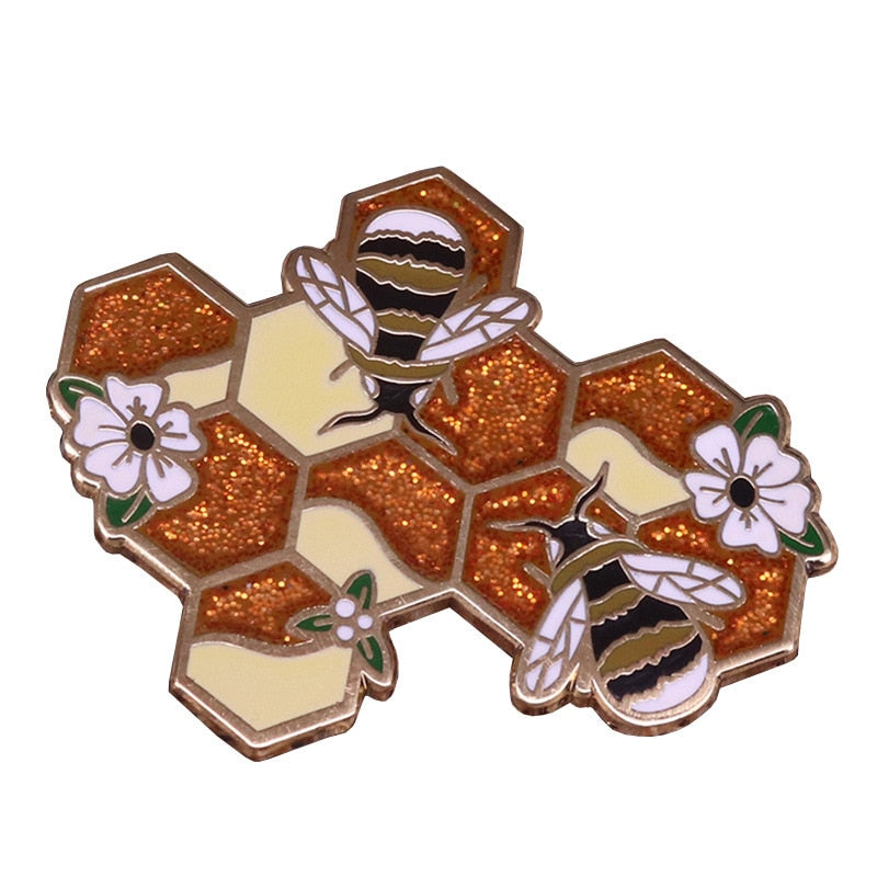Bee hive glitter brooch hardworking cute animal badge