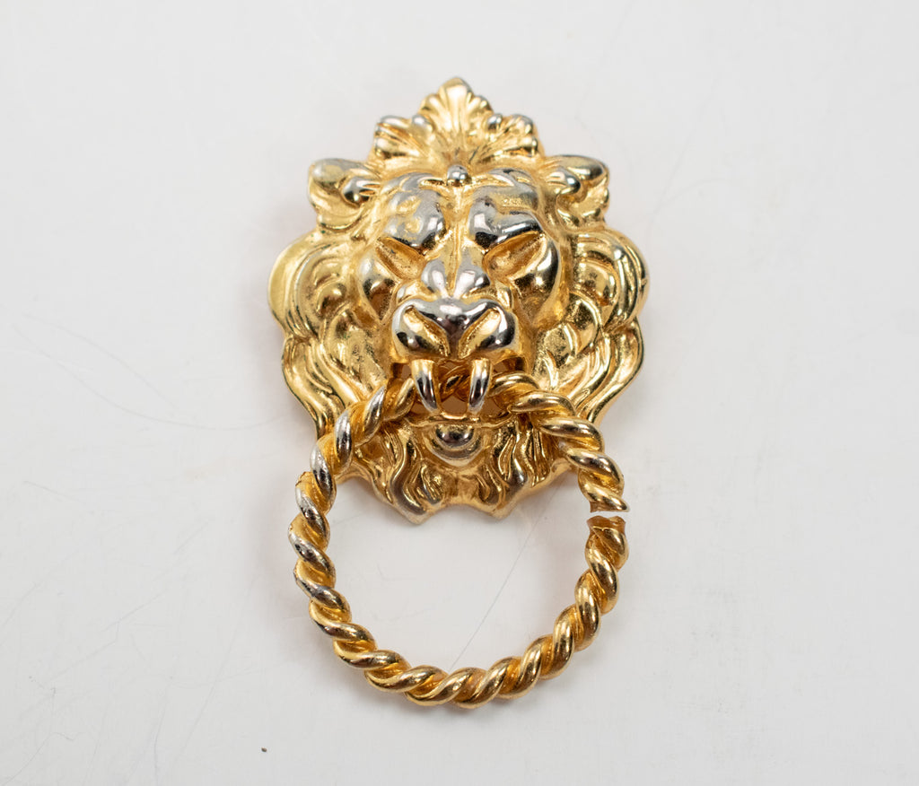 ANNE KLEIN Lion's Head Brooch Doorknocker Style Pin Gold Used