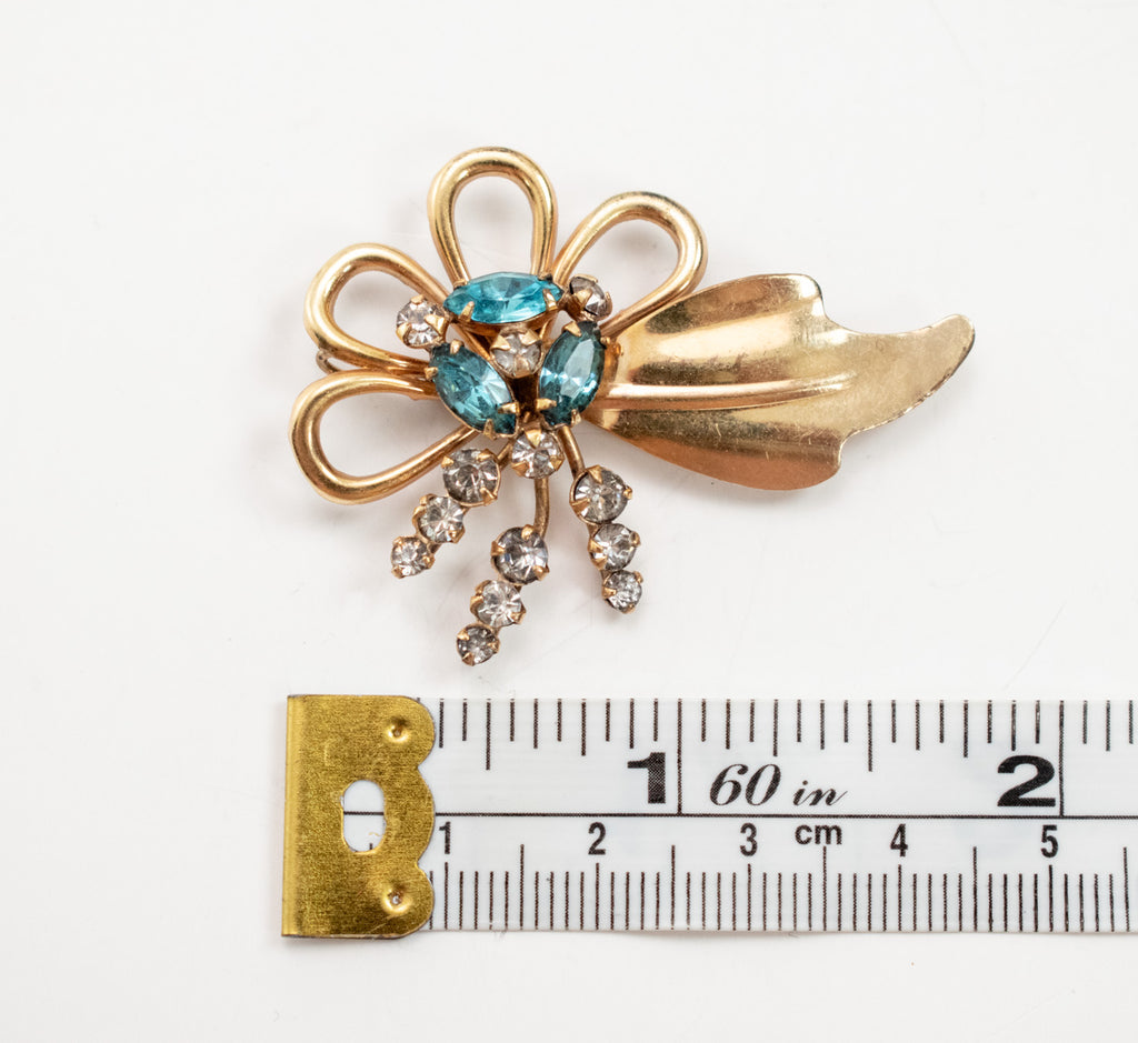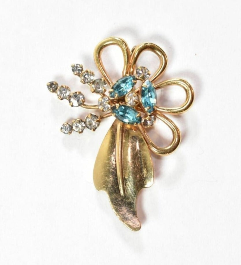 Brooch Pin vintage collectible pin Silver stones and teal decretive designed pin.