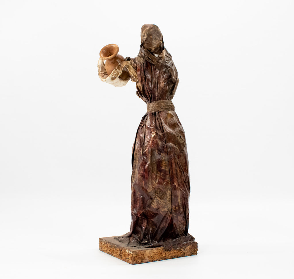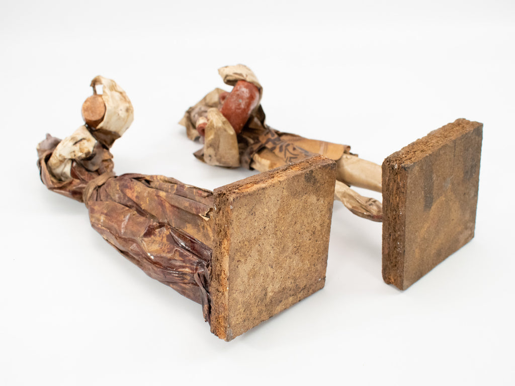 Vintage 1980's Mexican Folk Art Paper-Machete Sculpture Peasant Man & Woman