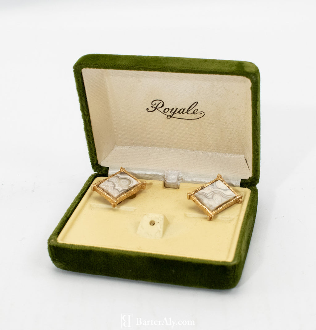 Royale Mens Vintage Cufflinks and Tuxedo Studs Used Green Box