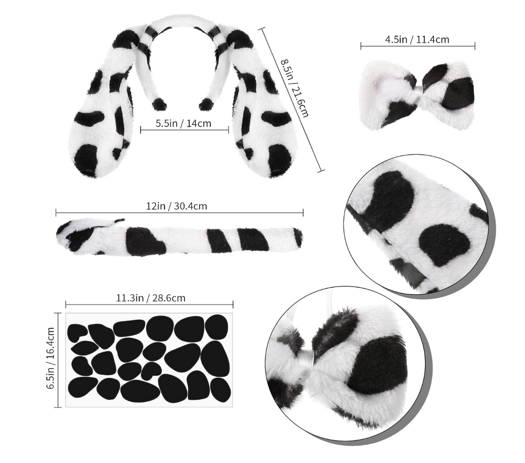 Dalmatian Spotted Puppy Dog Ears Headband Bowtie & Tail Cosplay Kids 6-7 Years NEW