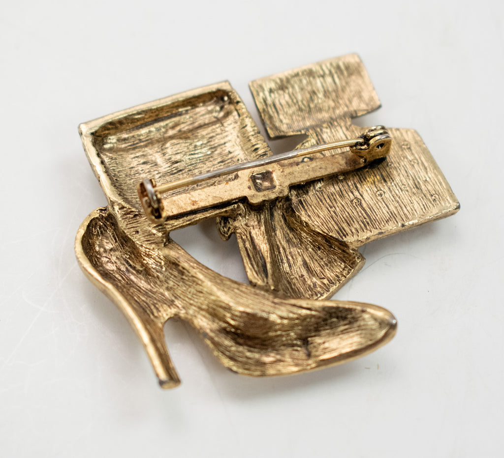 Golden diamond wallet Brooch Pin High Heels Used Vintage Pin