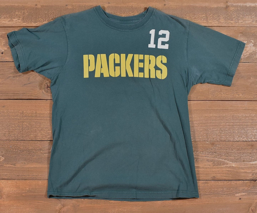 Green Bay Packers Medium Mens T shirt Faded used Shirt 12 Rodgers Retro Style Shirt