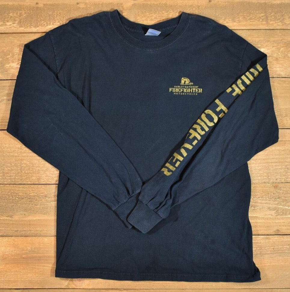 Harley Davidson Fire Fighter Motorcycle Large Shirt Mens Long Sleeve Used Mens A