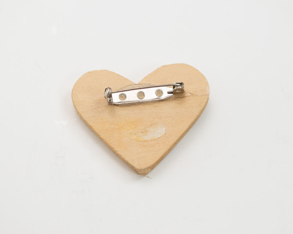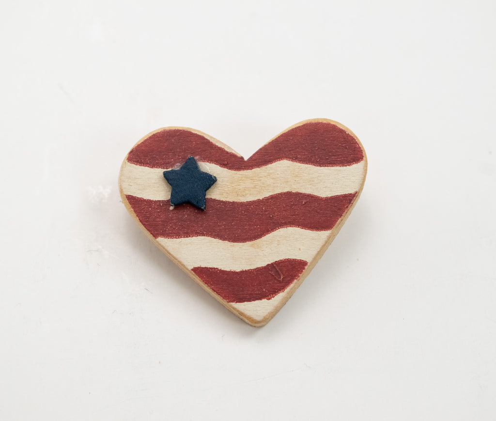 Heart Pin Wood Red White Blue USA Pin & Latch Used 2inch