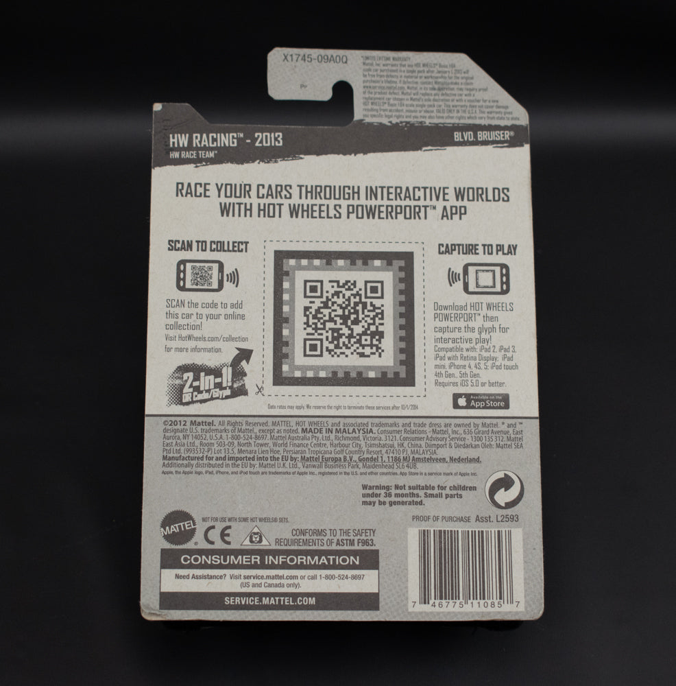 Hot Wheels Blvd Bruiser 108 HW Racing Track Car Blue 2012 Die Cast Mattel Blue