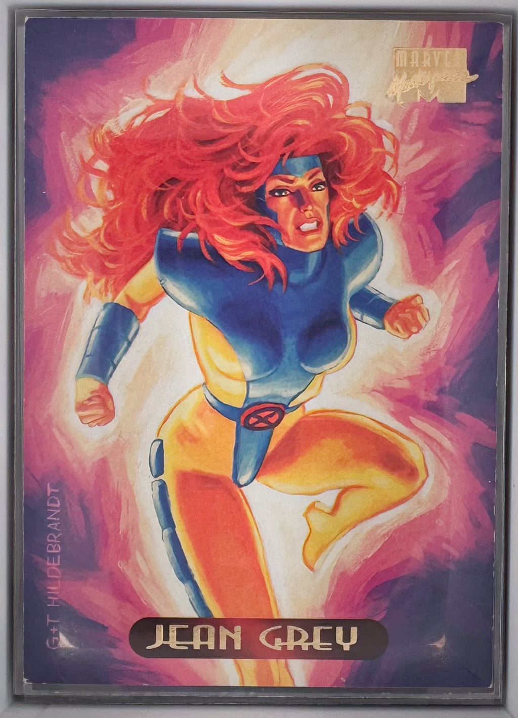 Jean Grey Marvel Masterpieces Card No. 45 from 1994 is a classic collectible featuring the iconic X-Men character. This vintage trading card captures Jean Grey in premium condition, showcasing the detailed artwork and design that defined Marvel's Masterpieces series. A must-have for serious collectors of 1990s Marvel cards and Jean Grey enthusiasts. Preserve this piece of comic book history in your collection.