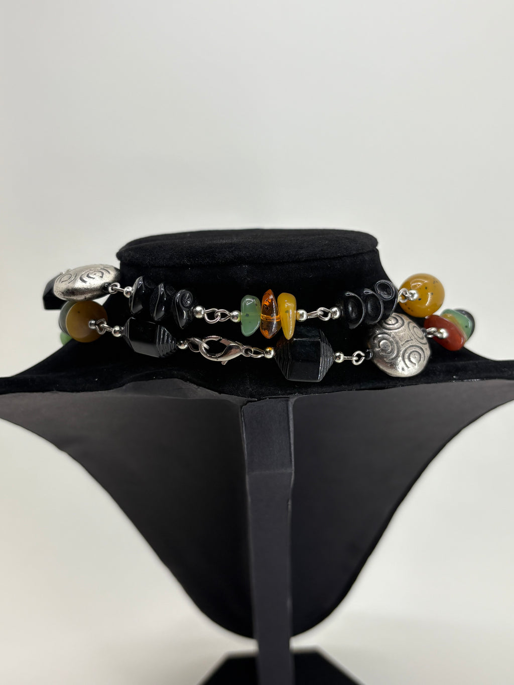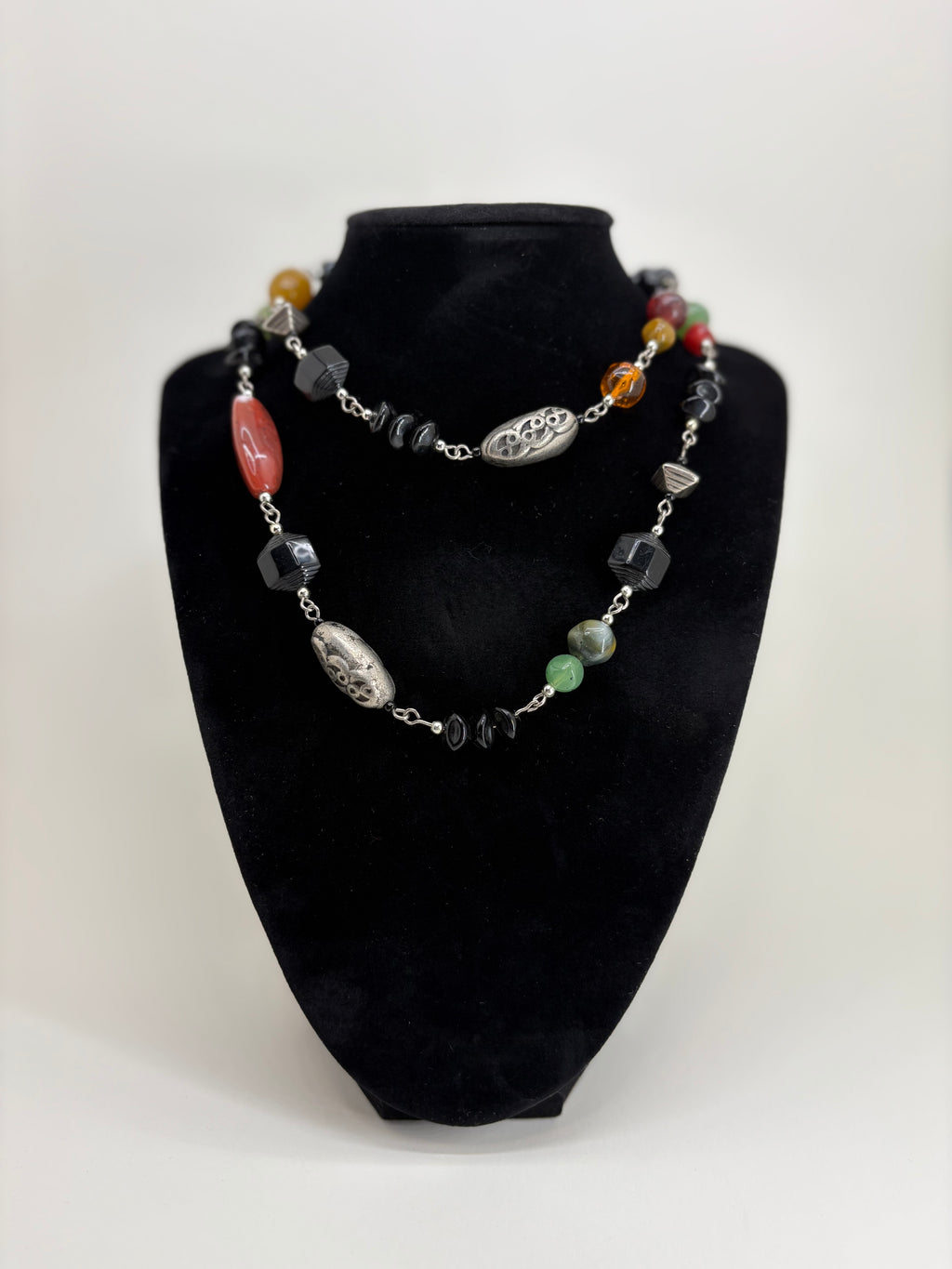 Vintage Style Beaded Necklace with Earthy Tones 15"