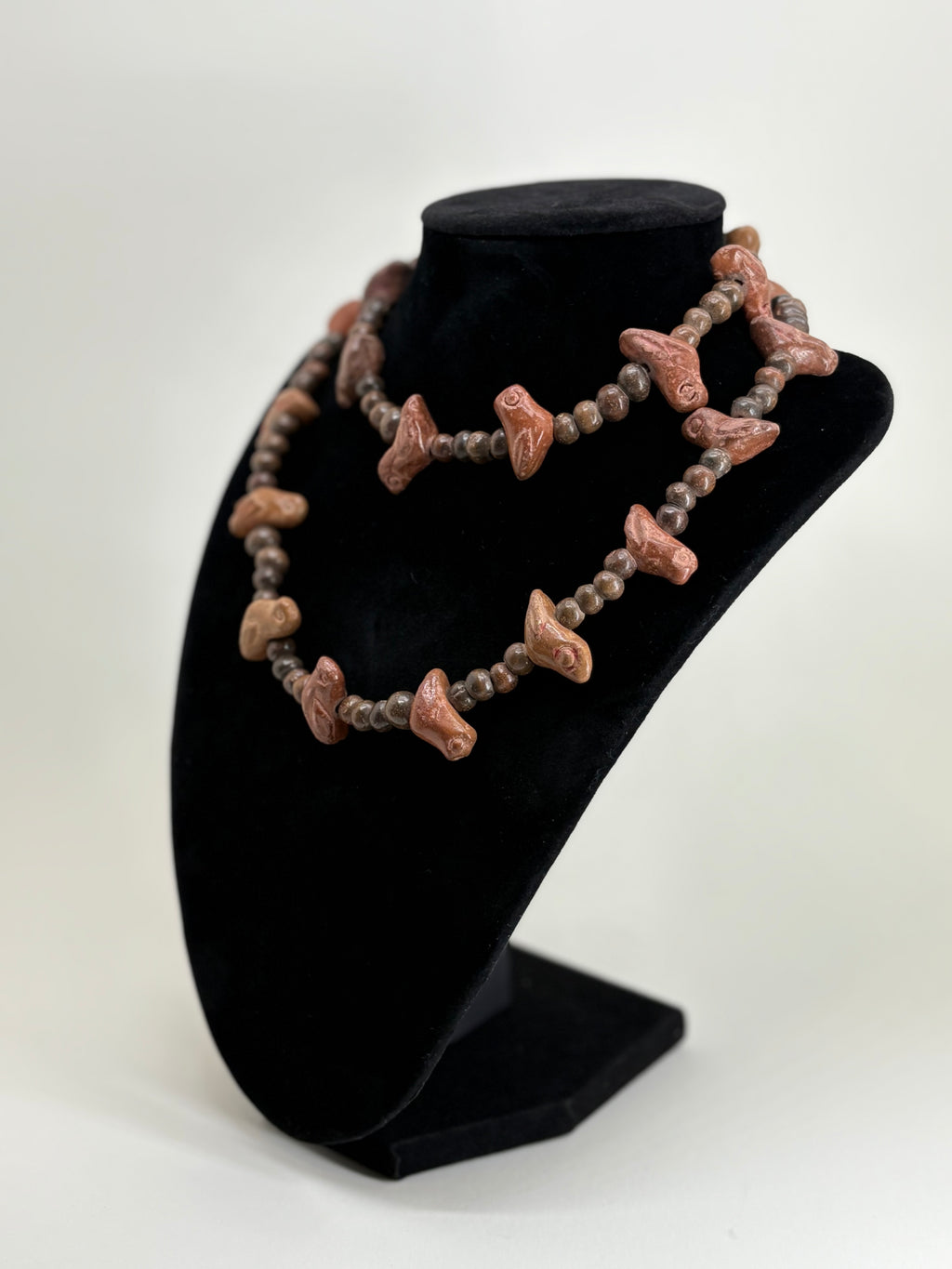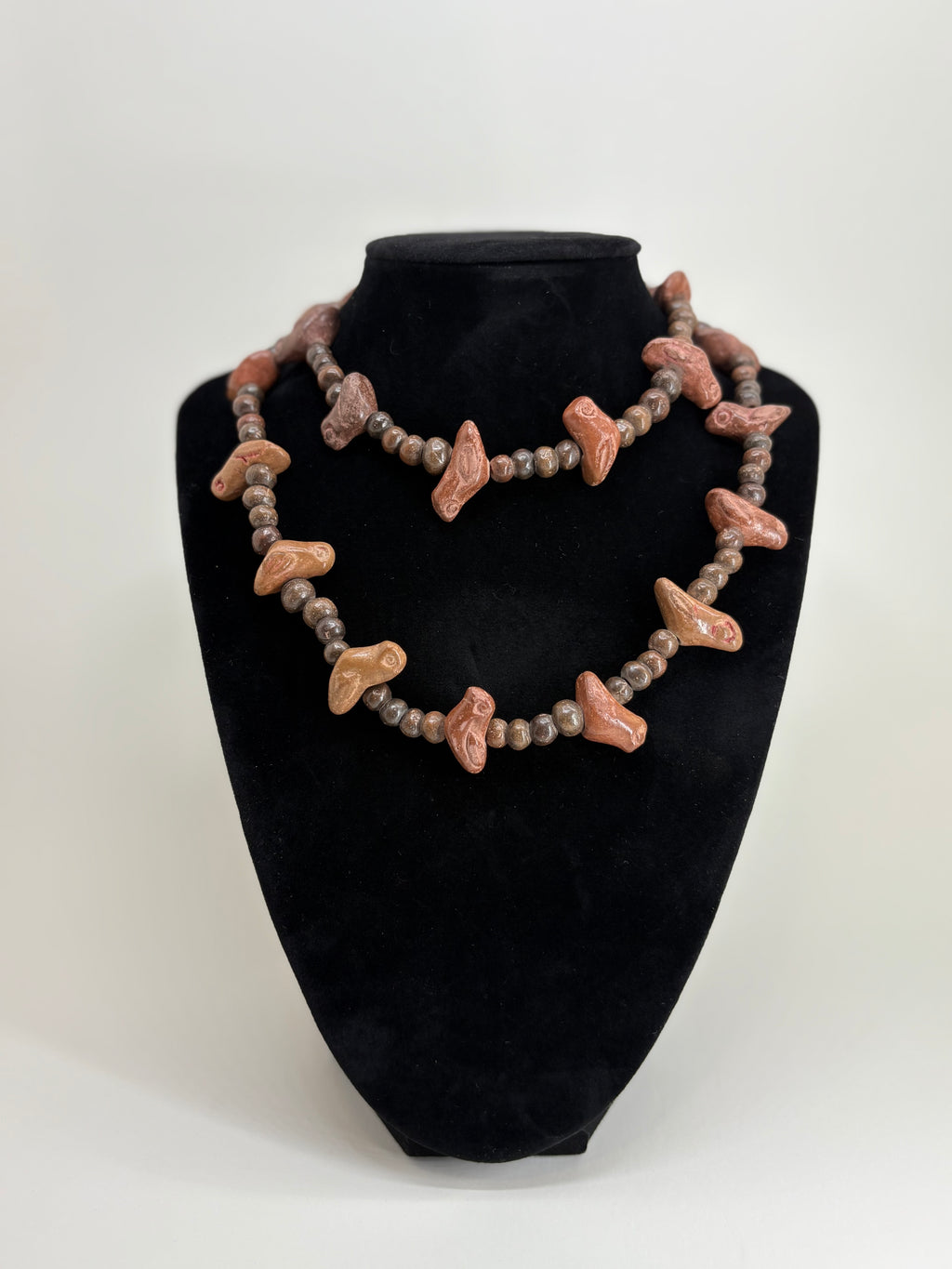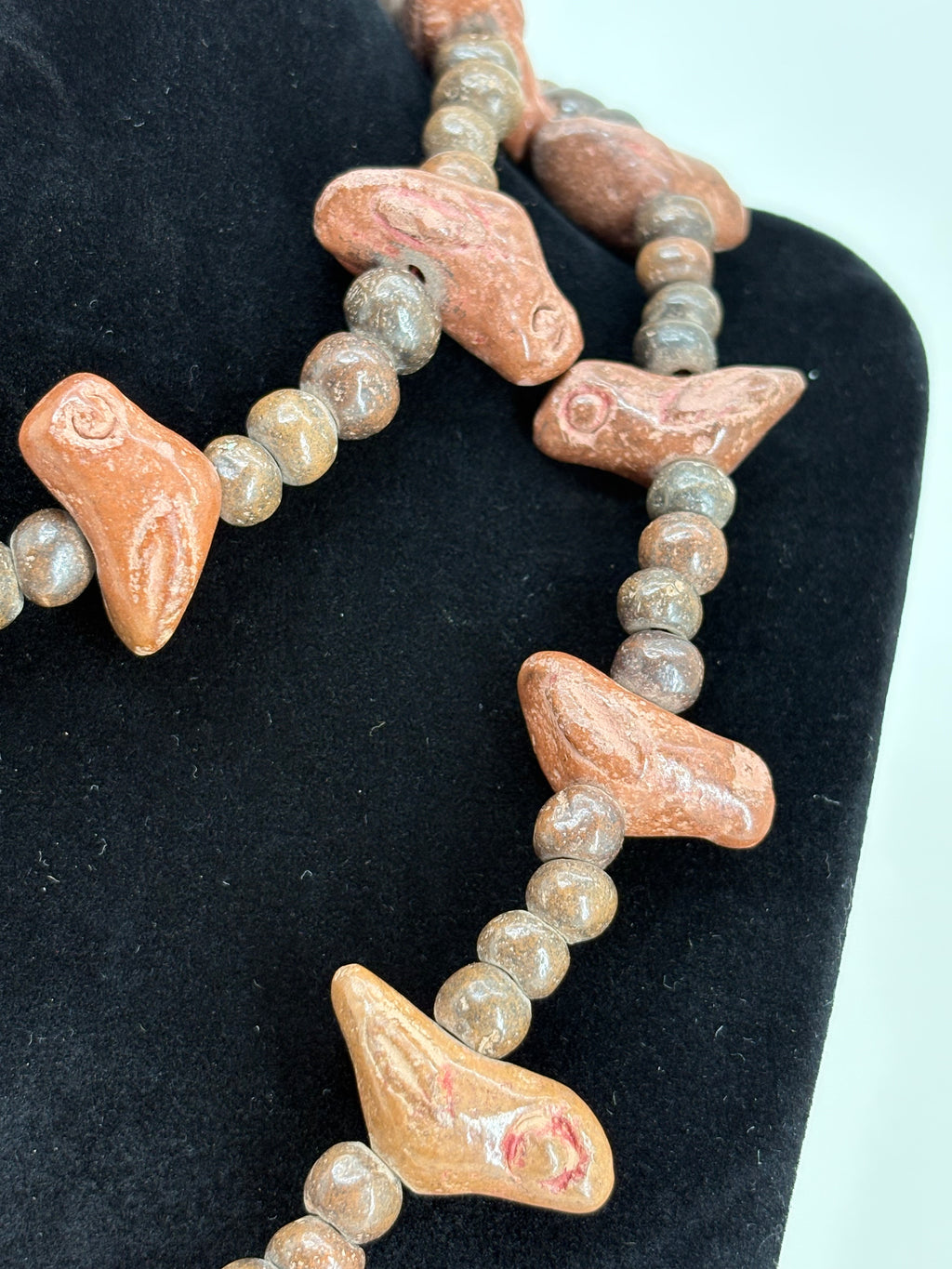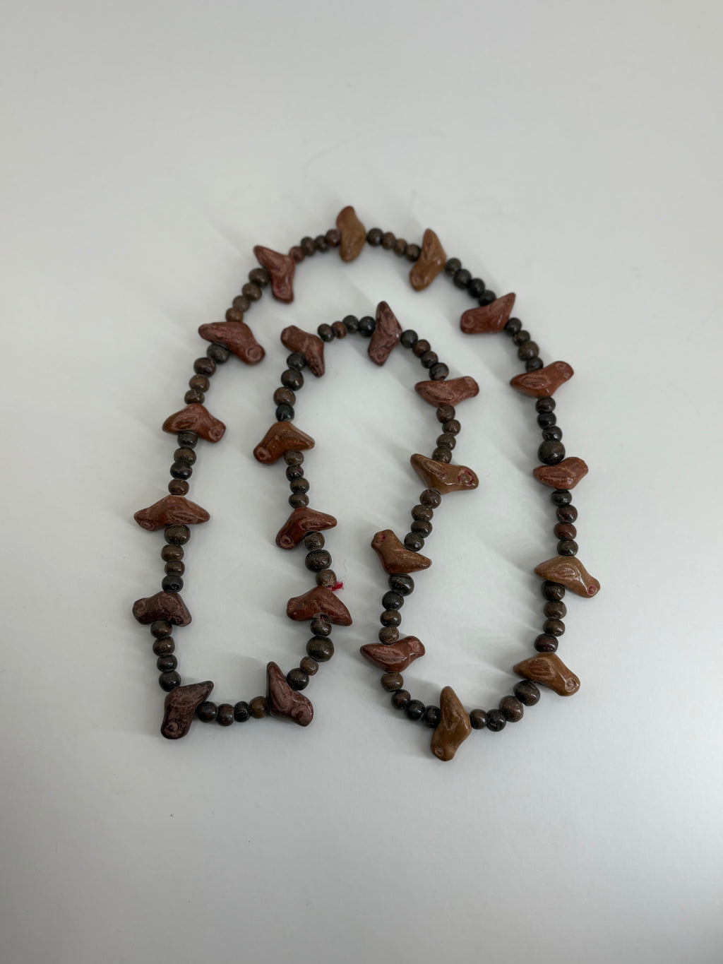Antique Ancient African Handmade/ Hand Carved Wooden Bird Beaded Necklace 13.5"