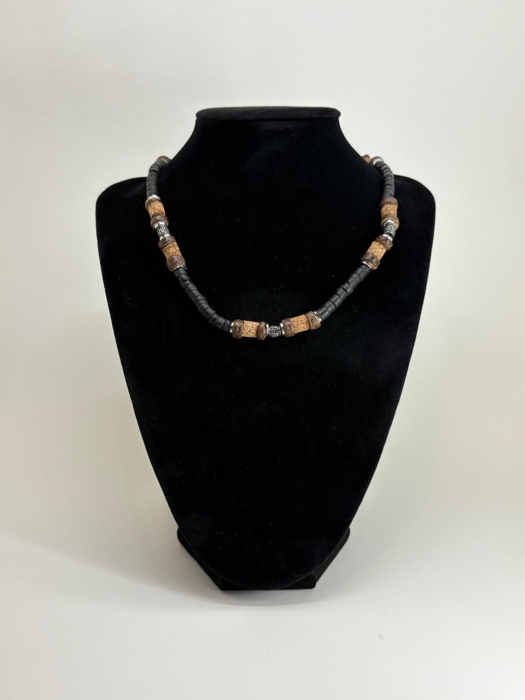 Bring earthy, laid-back style to your wardrobe with this retro 8-inch necklace, featuring a unique mix of cork and wooden beads. The combination of natural textures and warm tones gives this piece an organic, bohemian vibe — perfect for lovers of eco-inspired or vintage fashion.