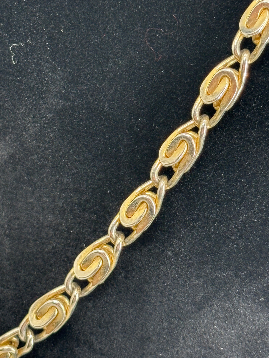 Elevate your vintage collection with this 9-inch gold tone S-link chain necklace, a timeless piece that radiates understated sophistication. The distinctive S-link design adds fluid movement and shine, making it a versatile accessory that complements both casual and dressy styles.
