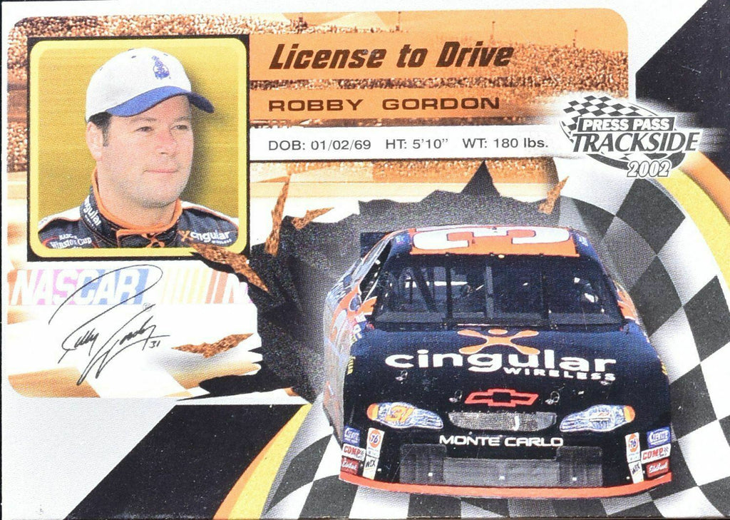 License to drive Robby Gordon Press Pass Track side 2002 LD 10/36 Nascar