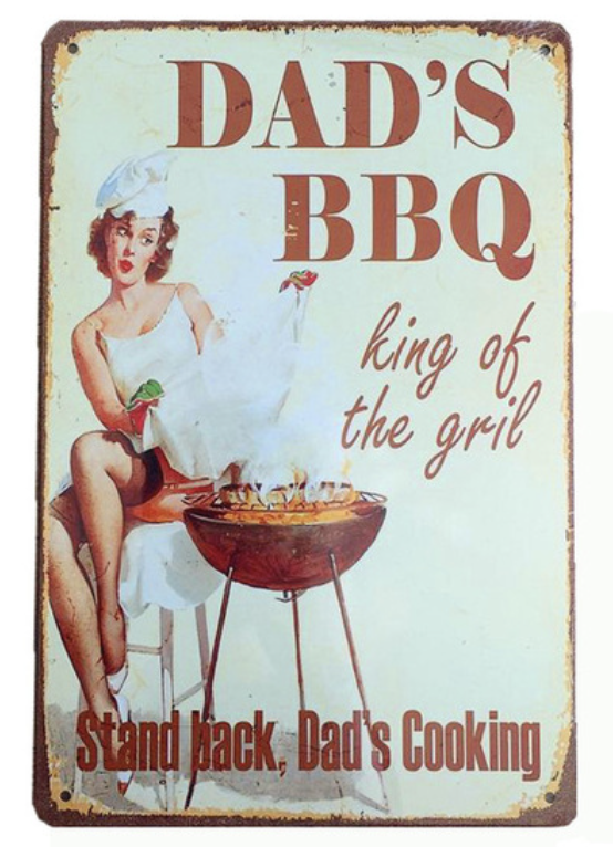Metal Bar Sign Dad's BBQ Pin Up Girl