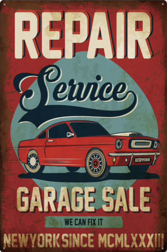 Metal Bar Sign Repair Service Garage Sale