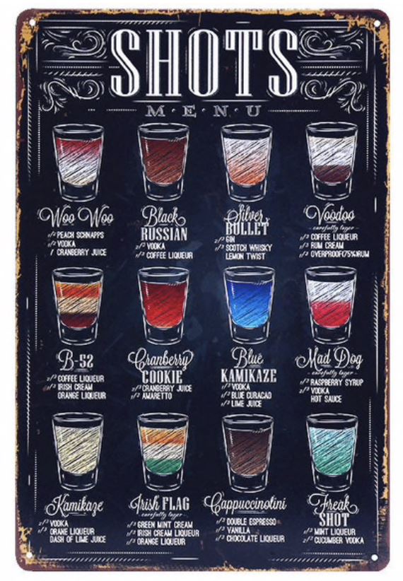 Metal Bar Sign Shot Names 8 x 12 Metal Sign