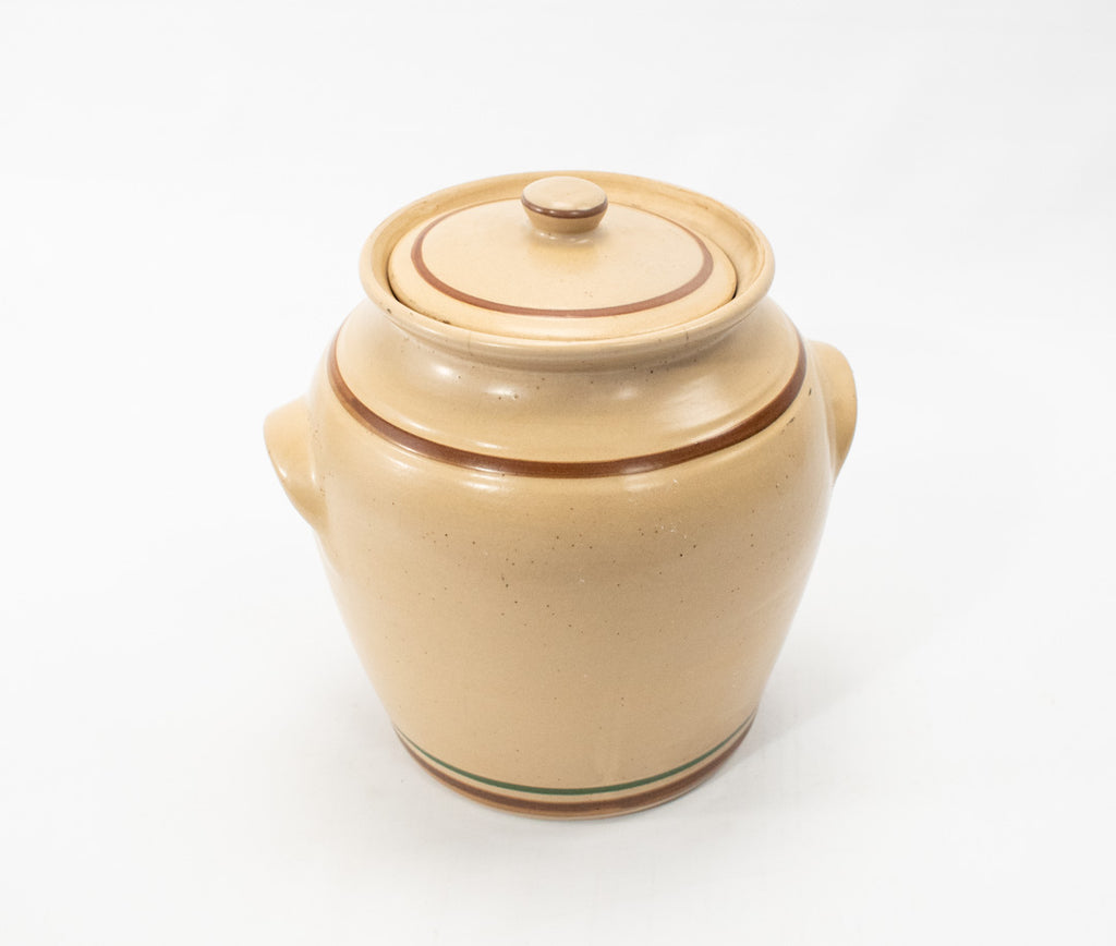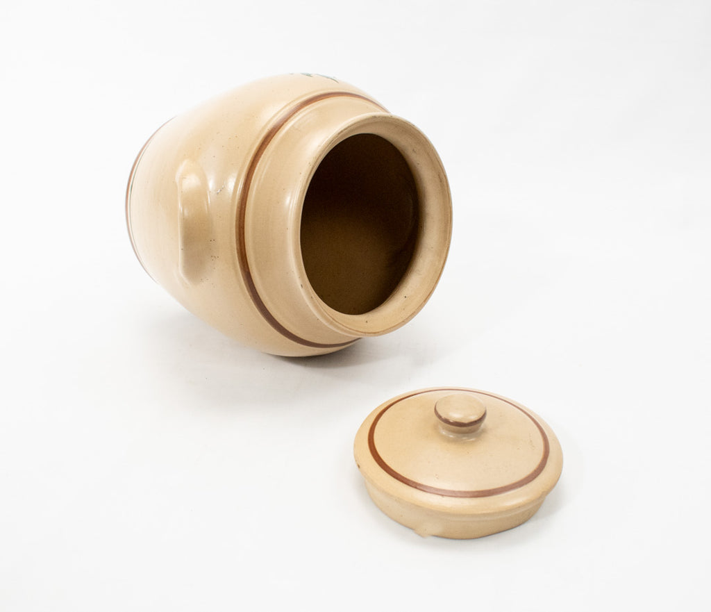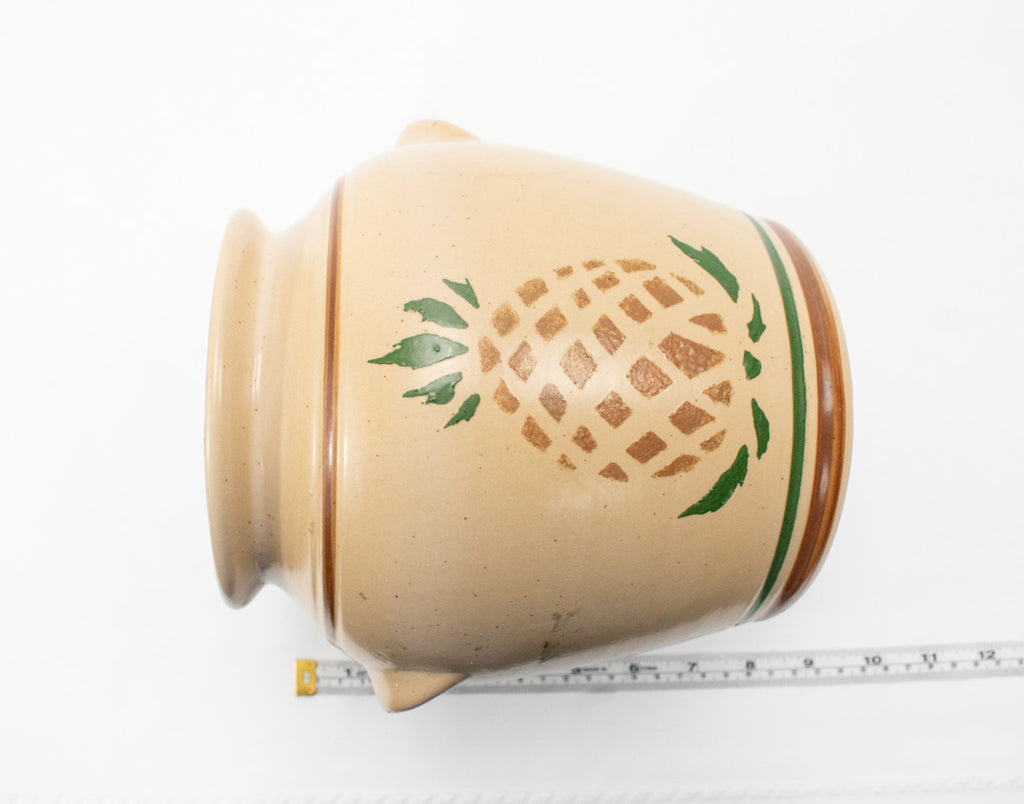 Pottery Vintage Pot and Lid Pineapple Container used 8 x 8 width AMAZING SHAPE !