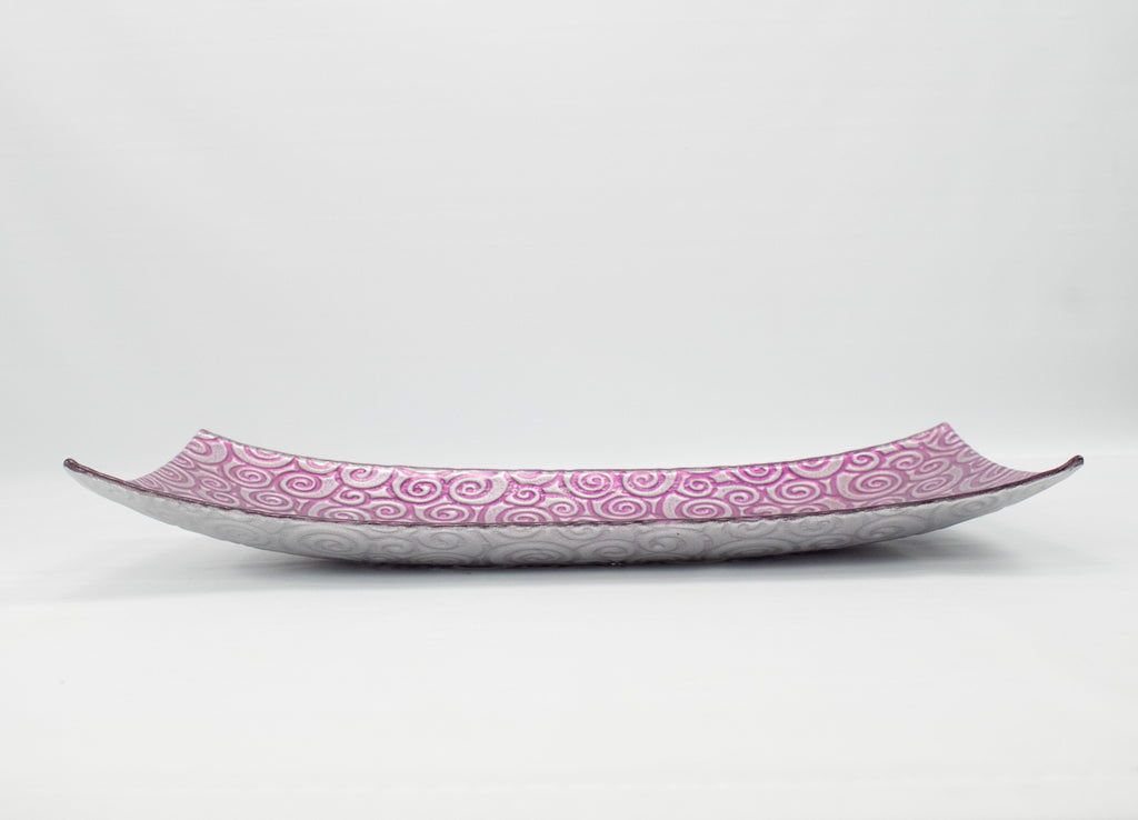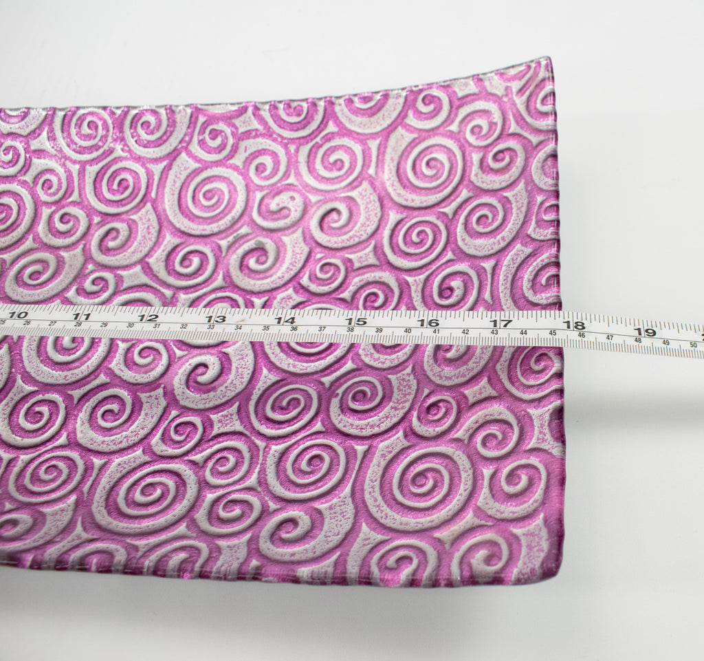 Table Dish Center Piece Purple & Silver Long Plate Used 18x8