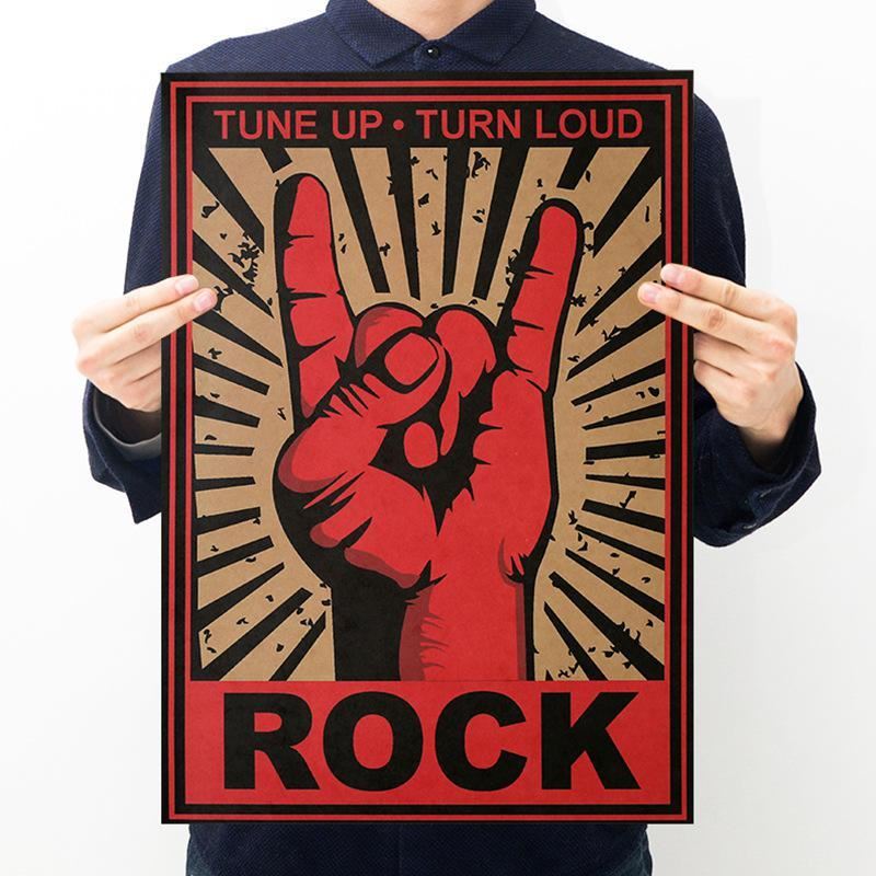 Room Decoration ROCK Gesture Classic Poster Retro Kraft Paper Poster Cafe Wester