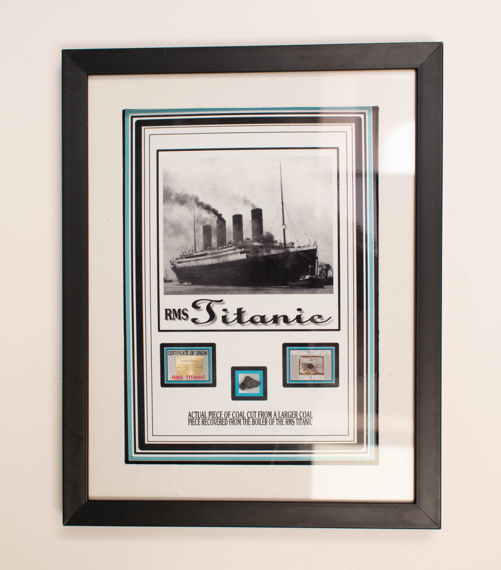 Titanic Coal Artifact Piece Framed 5x10 Photo Framed RMS Titanic Trimmed Coal