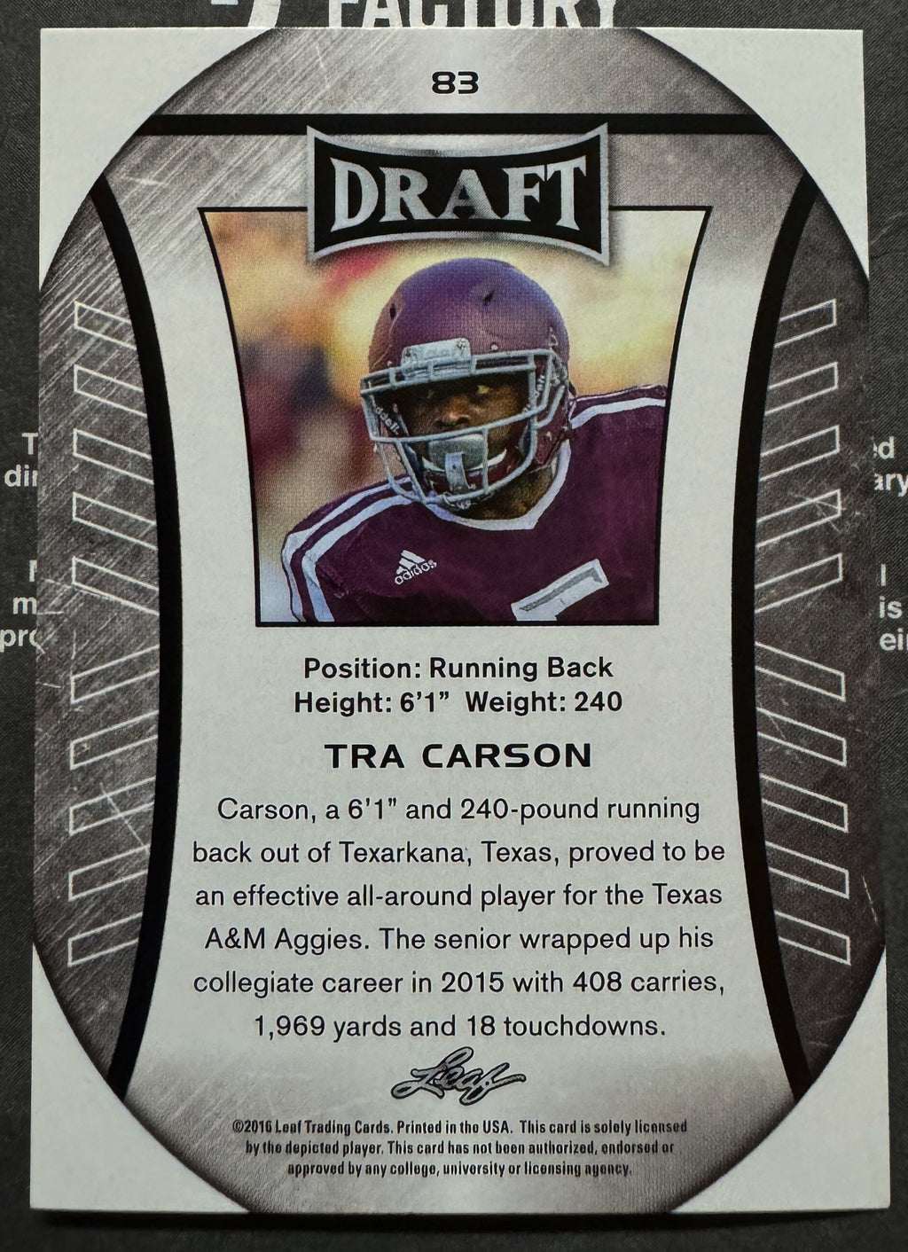 Tra Carson 2016 Leaf Draft #83 Texas A&M Aggies Football Card NM