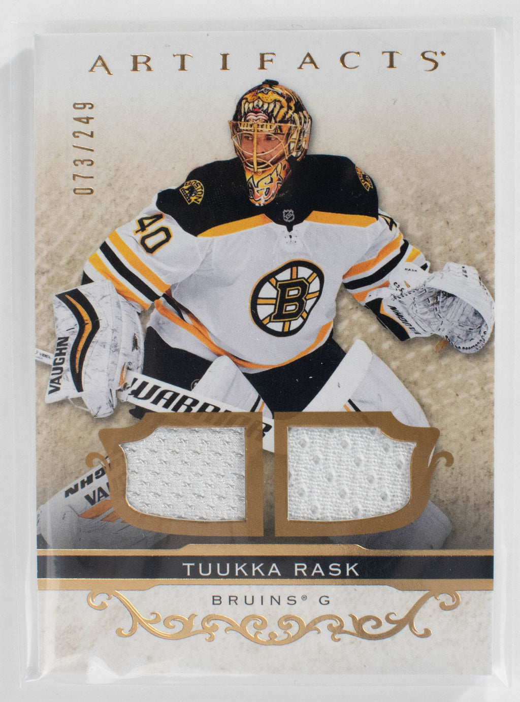 Tuukka Rask 66 Artifact Patch Card /249 Boston 21-22 Relic Gold UD