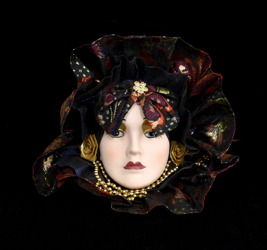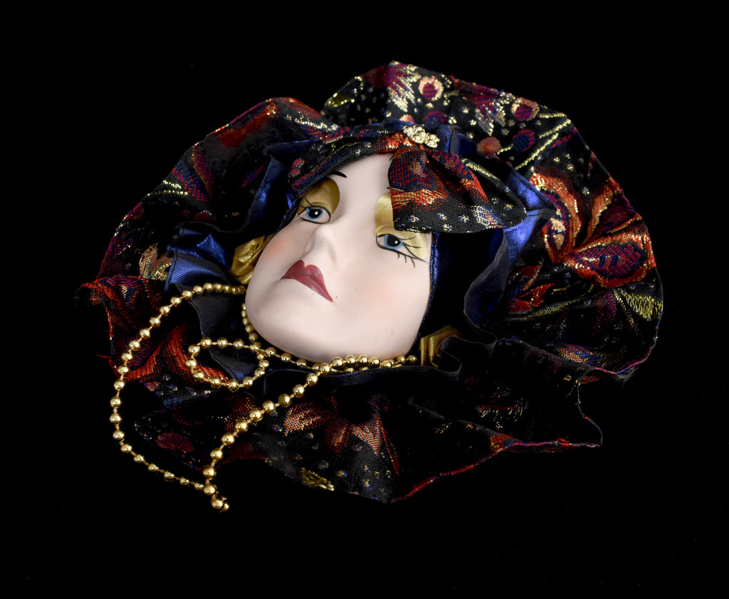 Vintage Mardi Gras Porcelain Ceramic Painted Face Wall Hanging Purple Used