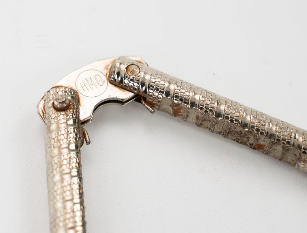 Vintage Silver Nut Cracker HMQ Hand Held Cracking Tool Used