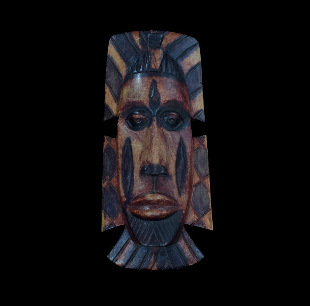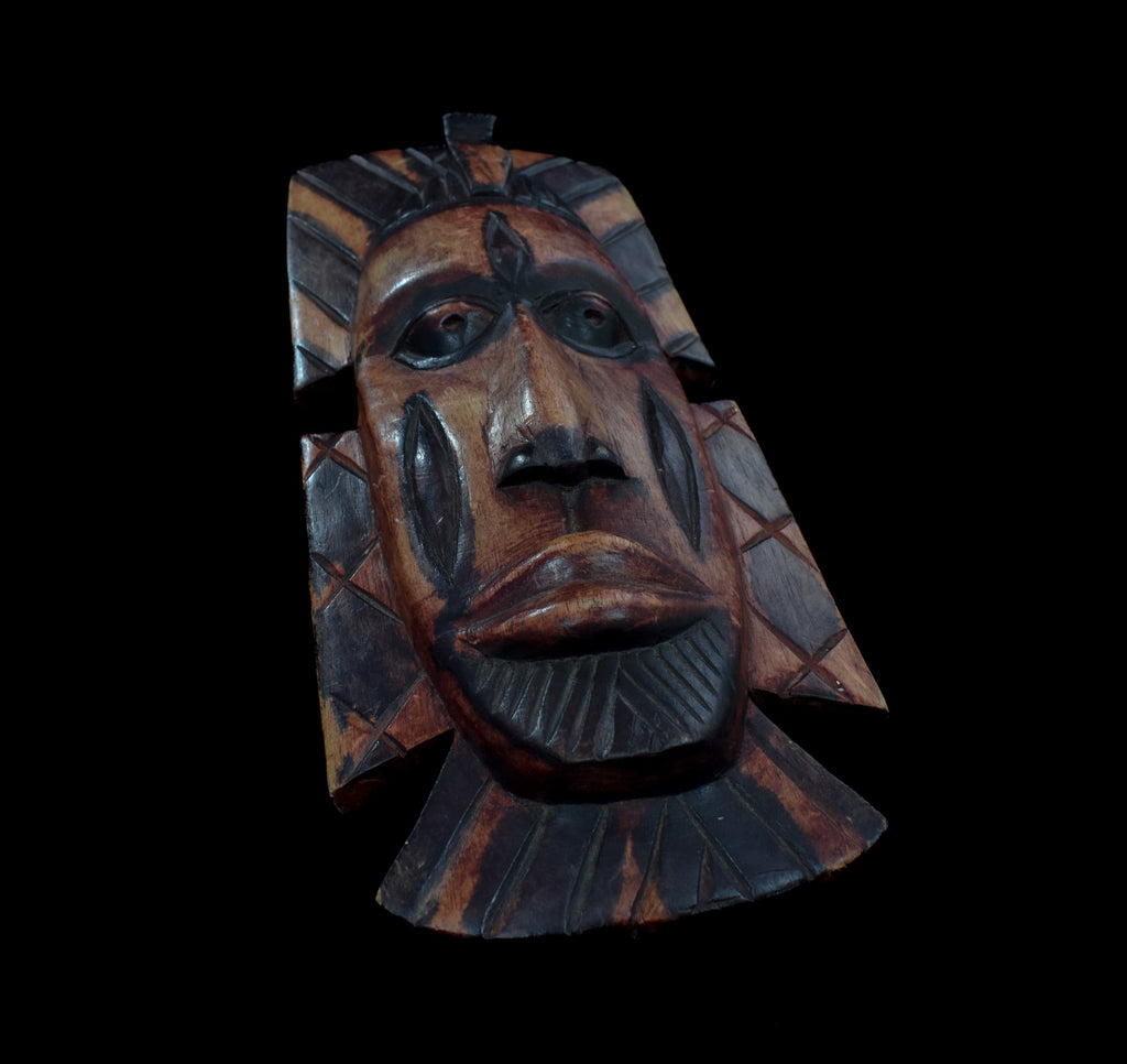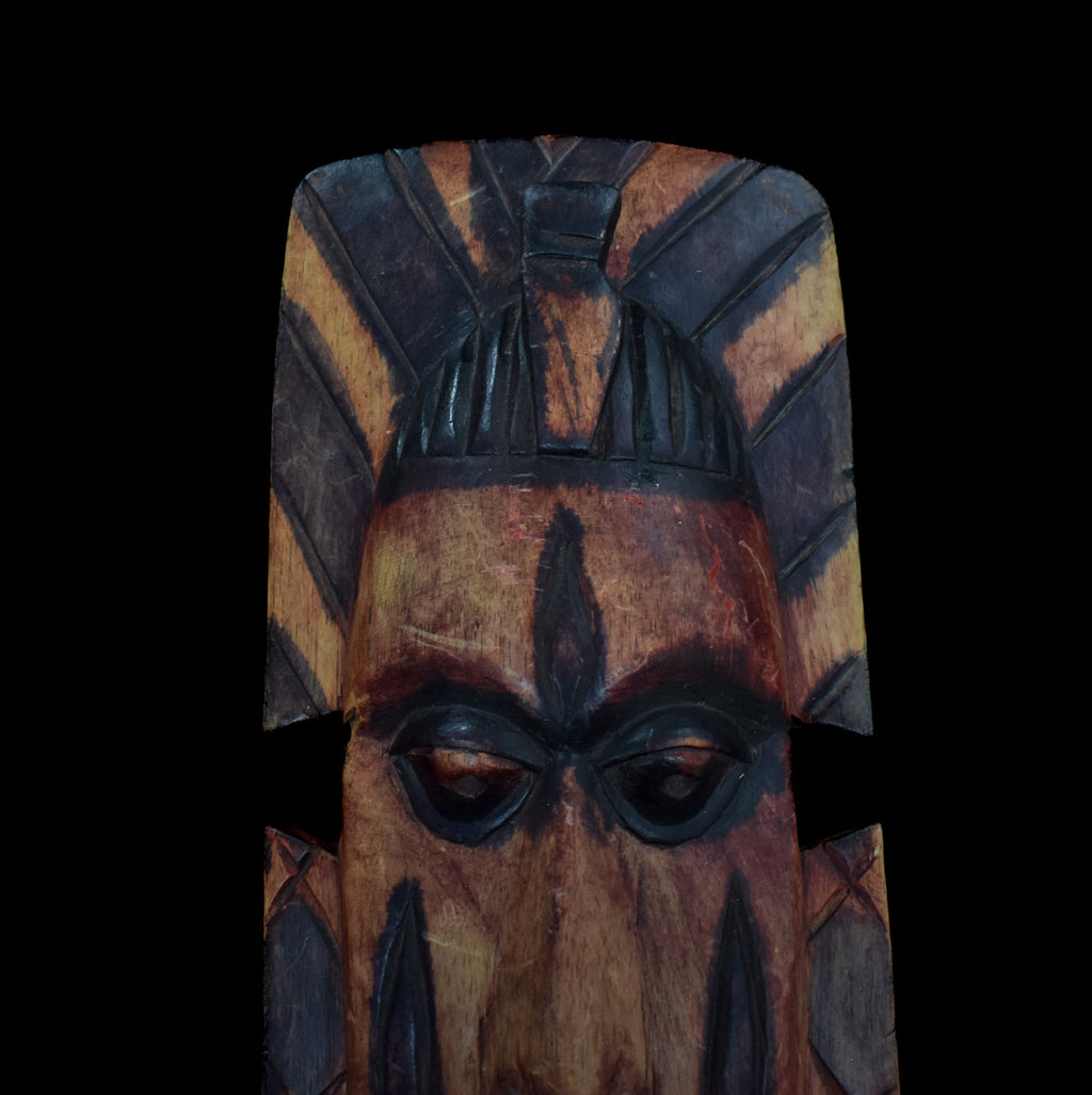 Wood Mask Hand Made Custom Piece Vintage Tiki Mask Brown Used